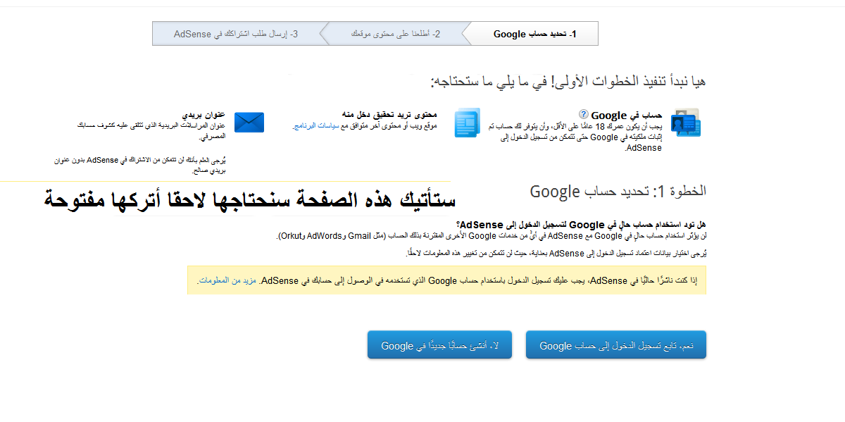 نرجع لصفحت انشاء حساب جوجل ادسنس التي تركناها