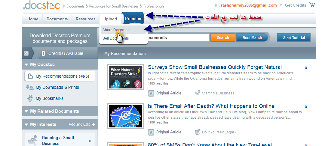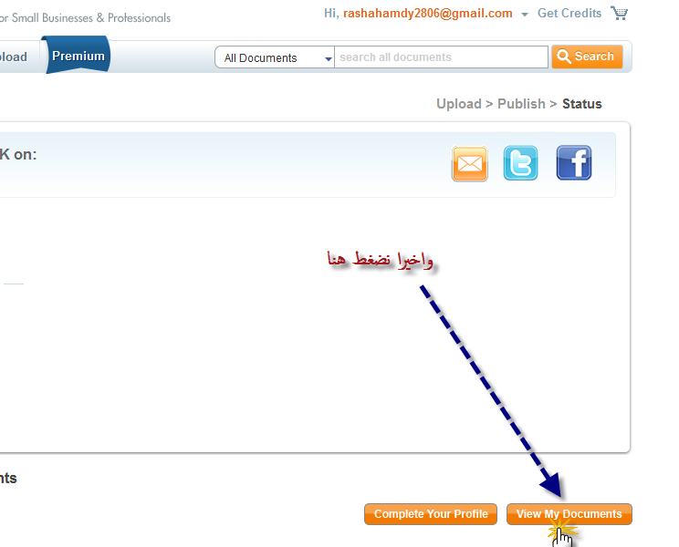 الأن نفتح موقع docstoc.com من جديد ونرفع عليه ملفات pdf او word