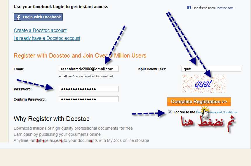 بعد ذلك نمر الى التسجيل في موقع docstoc